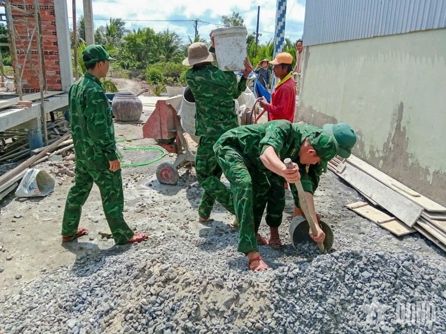 | Tuổi trẻ Đồn Biên phòng Rạch Gốc giúp gia đình chính sách sửa chữa lại nhà. |