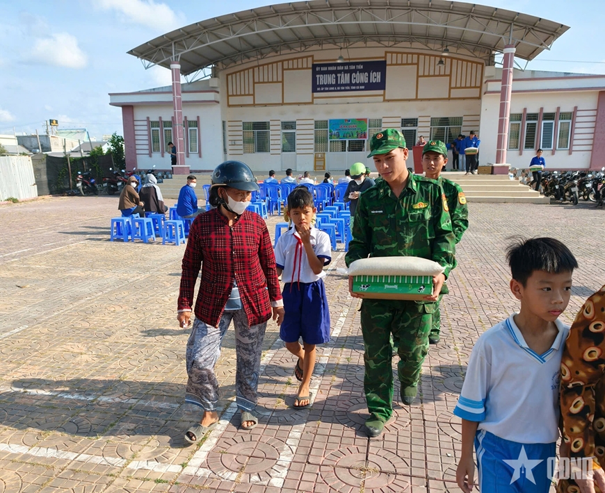 | Đồn Biên phòng Tân Tiến phối hợp cùng địa phương vận động nhà hảo tâm tặng gạo, nhu yếu phẩm hỗ trợ người dân có hoàn cảnh khó khăn. |