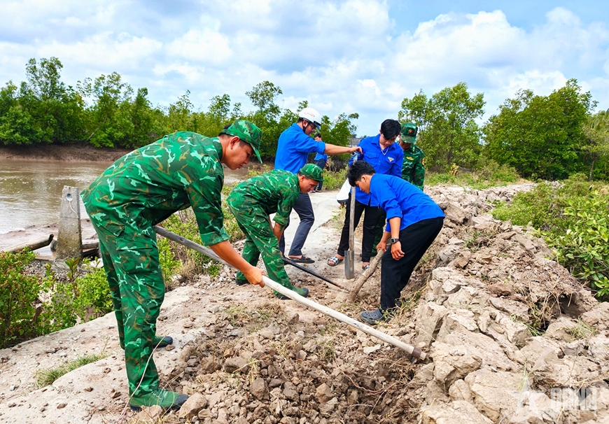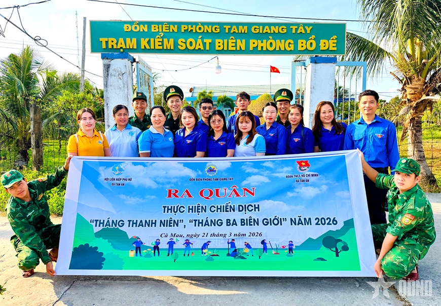 Thực hiện “Tháng Thanh niên”, “Tháng Ba biên giới” năm 2026, Đoàn Thanh niên BĐBP tỉnh Cà Mau đã tổ chức nhiều công trình, phần việc như: Tổng dọn vệ sinh; phát quang và sửa chữa hơn 20km hành lang lộ giao thông nông thôn; thu gom và xử lý gần 60m3 rác thải; trồng mới và chăm sóc hơn 2.000 cây xanh; tặng 50 suất quà cho các hộ gia đình, các em học sinh có hoàn cảnh khó khăn, trị giá 30 triệu đồng; cắt tóc miễn phí cho hơn 350 em học sinh và nhân dân trên địa bàn; trao 10 suất học bổng cho các em học sinh trong Chương trình “Nâng bước em tới trường - Con nuôi đồn Biên phòng”, trị giá 15 triệu đồng; vận động các mạnh thường quân, nhà hảo tâm tặng 3 căn “Nhà tình thương”, trị giá 150 triệu đồng cho hộ nghèo trên địa bàn và nhiều hoạt động an sinh xã hội khác.