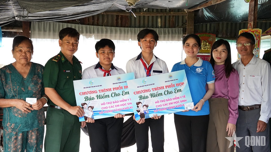 | Đồn Biên phòng Đất Mũi phối hợp với Hội Liên hiệp Phụ nữ xã Đất Mũi trao thẻ bảo hiểm y tế tặng học sinh có hoàn cảnh khó khăn trên địa bàn. |