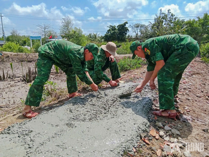 | Tuổi trẻ Đồn Biên phòng Khánh Hội sửa chữa lộ giao thông nông thôn. |