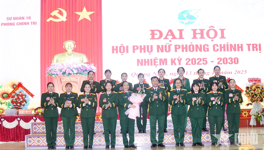 Ban Chấp hành Hội Phụ nữ Phòng Chính trị Sư đoàn 10 nhiệm kỳ 2025-2030 và Đoàn đại biểu dự Hội nghị Phụ nữ Quân đoàn 34 ra mắt đại hội. |
