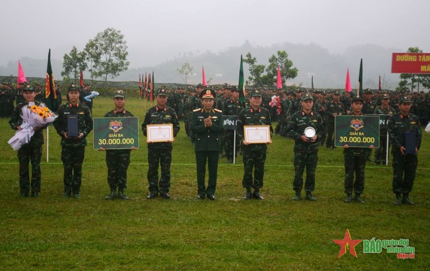| Trung tướng Nguyễn Doãn Anh, Ủy viên Trung ương Đảng, Phó tổng Tham mưu trưởng Quân đội nhân dân Việt Nam trao thưởng cho đội giành giải nhất. |