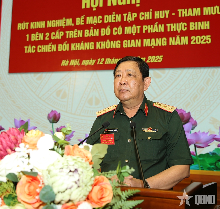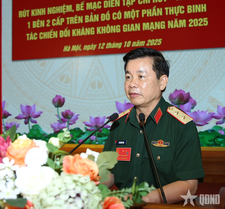 Phát biểu bế mạc diễn tập, Thượng tướng Huỳnh Chiến Thắng ghi nhận và chúc mừng thành tích của các cơ quan, đơn vị đã đạt được trong diễn tập trong cuộc diễn tập chỉ huy - tham mưu 1 bên 2 cấp trên bản đồ 1 phần thực binh đối kháng không gian mạng cho Bộ tư lệnh 86 năm 2025.