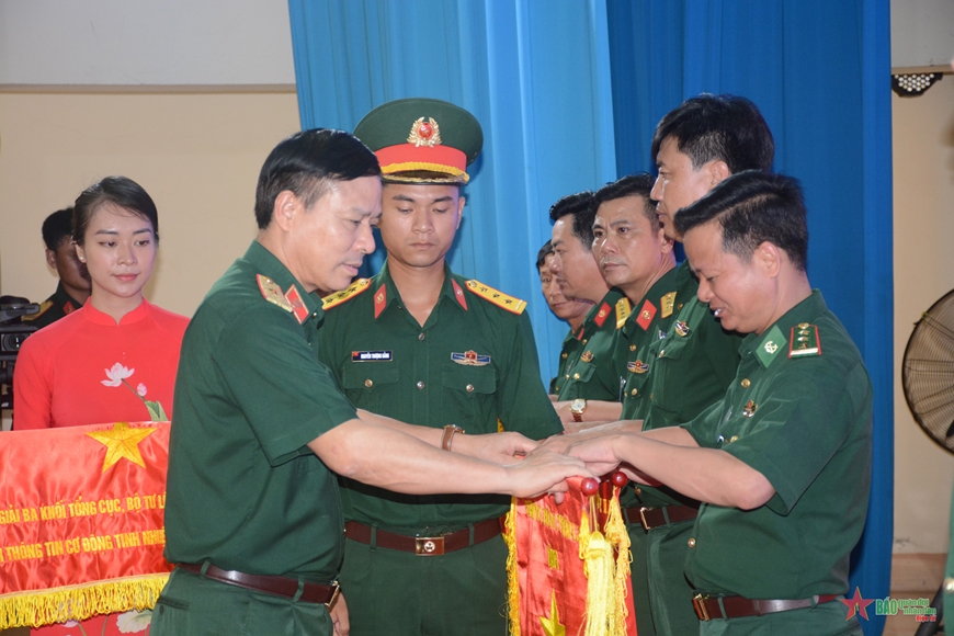 | Lãnh đạo Binh chủng Thông tin liên lạc trao thưởng cho các tập thể, cá nhân giành kết quả xuất sắc tại hội thi. Ảnh: KIM NGỌC |