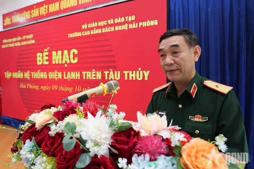 Ngày 9-10, tại Hải Phòng, Cục Kỹ thuật quân, binh chủng (Tổng cục Hậu cần-Kỹ thuật) phối hợp với Trường Cao đẳng Bách nghệ Hải Phòng tổ chức bế mạc lớp tập huấn hệ thống điện lạnh trên tàu thủy toàn quân năm 2025. Thiếu tướng Nguyễn Quang Anh, Cục trưởng Cục Kỹ thuật quân, binh chủng chủ trì bế mạc tập huấn.