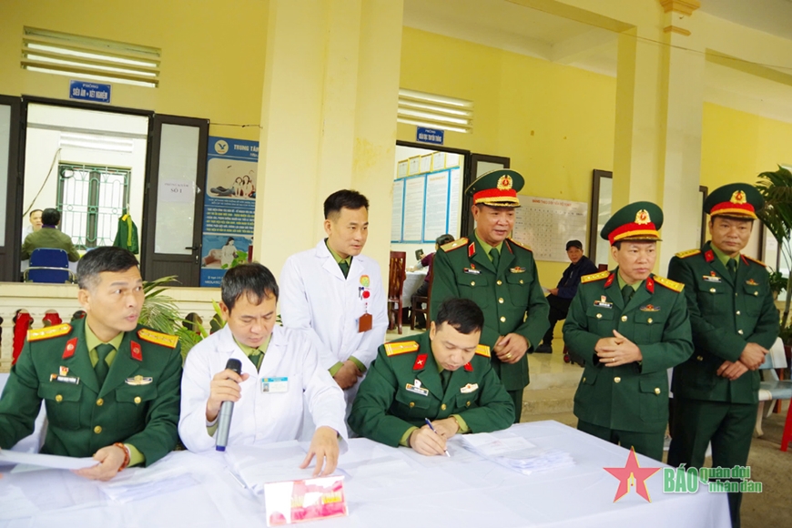 Lãnh đạo Quân đoàn 12 kiểm tra công tác khám bệnh, tư vấn sức khỏe cho nhân dân tại chương trình. |