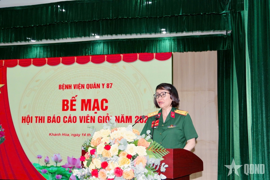 Phát biểu bế mạc, Thượng tá Phạm Thị Hạnh, Bí thư Đảng ủy, Phó giám đốc Bệnh viện Quân y 87 nhấn mạnh: Đây là hoạt động thiết thực nhằm nâng cao chất lượng công tác tuyên truyền miệng, góp phần tăng cường hiệu quả công tác Đảng, công tác chính trị trong Bệnh viện, hoàn thành tốt nhiệm vụ chăm sóc, bảo vệ sức khỏe bộ đội và nhân dân. Thông qua hội thi, Đảng ủy, Ban Giám đốc Bệnh viện đánh giá thực chất ưu điểm, khuyết điểm của đội ngũ báo cáo viên kiêm nhiệm, nhất là những kiến thức lý luận, khả năng vận dụng lý luận vào thực tiễn, kiến thức về nghiệp vụ báo cáo viên tuyên truyền miệng, khả năng, phương pháp tổ chức tuyên truyền, giáo dục chính trị cho các đối tượng tại đơn vị.