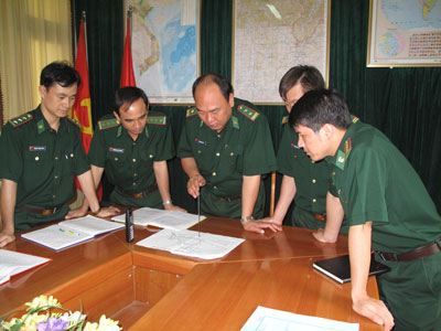 Cán bộ, chiến sĩ Đồn BP Tân Thanh lên phương án truy bắt tội phạm.