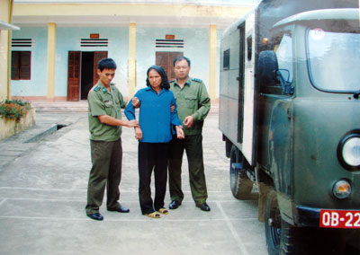 Đồng chí Vinh (ngoài cùng bên trái) tham gia dẫn giải tội phạm buôn bán ma túy.