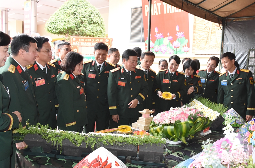 | Lãnh đạo Ban Thanh niên Quân đội tặng hoa chúc mừng hội nghị. |