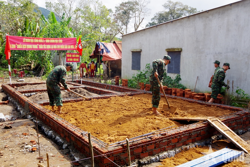 | Bộ đội Lữ đoàn Đặc công nước 5 giúp dân xây nhà. |