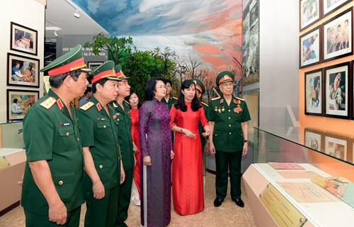 Phó chủ tịch nước Đặng Thị Ngọc Thịnh và các đại biểu tham quan Bảo tàng Hóa học. |