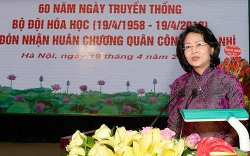 Phát biểu tại Lễ kỷ niệm, Phó Chủ tịch nước Đặng Thị Ngọc Thịnh thay mặt lãnh đạo Đảng, Nhà nước, ghi nhận, đánh giá cao và nhiệt liệt biểu dương những thành tích, chiến công của Bộ đội Hóa học đã giành được trong suốt 60 năm qua; đồng thời khẳng định Bộ đội Hóa học đã góp phần xứng đáng vào các cuộc kháng chiến giải phóng dân tộc, cũng như sự nghiệp xây dựng và bảo vệ Tổ quốc ngày nay.