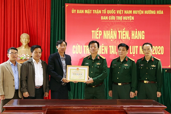 Cũng trong dịp này Đoàn công tác của Bộ Tư lệnh Binh chủng do Đại tá Nguyễn Văn Thuật, Phó tư lệnh Binh chủng làm trưởng đoàn đã đến thăm, động viên Đảng bộ, chính quyền và nhân dân các dân tộc huyện Hướng Hóa; trao tặng số tiền 200 triệu đồng cùng 4,5 tấn hàng hóa gồm các nhu yếu phẩm (trị giá hơn 100 triệu đồng) để cứu trợ đồng bào bị ảnh hưởng sau bão lũ… Trước đó, đoàn công tác cũng đã đến Bộ tư lệnh Quân khu 4 trao tặng số tiền 150 triệu đồng hỗ trợ thân nhân các gia đình liệt sĩ đã hy sinh khi làm nhiệm vụ cứu hộ cứu nạn giúp nhân dân khắc phục hậu quả mưa lũ trên địa bàn Quân khu 4.