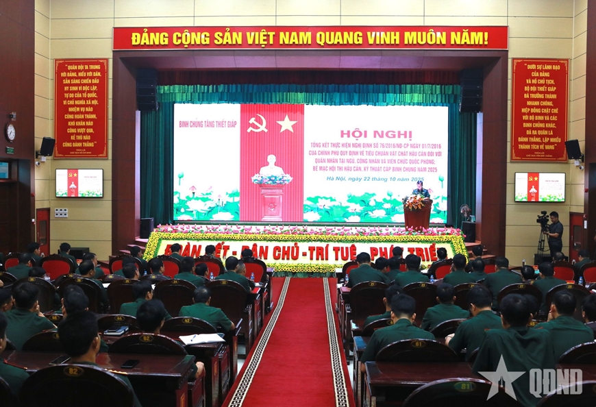 Về nội dung thực hiện Nghị định số 76/2016/NĐ-CP, báo cáo tại hội nghị chỉ rõ, nhờ sự lãnh đạo, chỉ đạo của Quân ủy Trung ương, Bộ Quốc phòng, Binh chủng TTG vượt qua nhiều khó khăn do tổ chức đơn vị phân tán, biên chế mỏng; do thiên tai, dịch bệnh, giá thị trường biến động. Các đầu mối đơn vị trong toàn binh chủng đã bảo đảm quân nhu đầy đủ, định lượng ăn vượt 3.200-3.500 kcal/người/ngày, 100% đơn vị đạt "Đơn vị nuôi quân giỏi, quản lý quân nhu tốt"; cung cấp quân trang kịp thời, đúng quy định... Phát huy những kết quả đã đạt được, trong thời gian tới, Binh chủng TTG cần phấn đấu tăng định mức vật chất, quân trang dã chiến, đồ vải quân y; bổ sung diện tích kho, tủ tài liệu; tăng cường hỗ trợ y tế cho quân nhân...