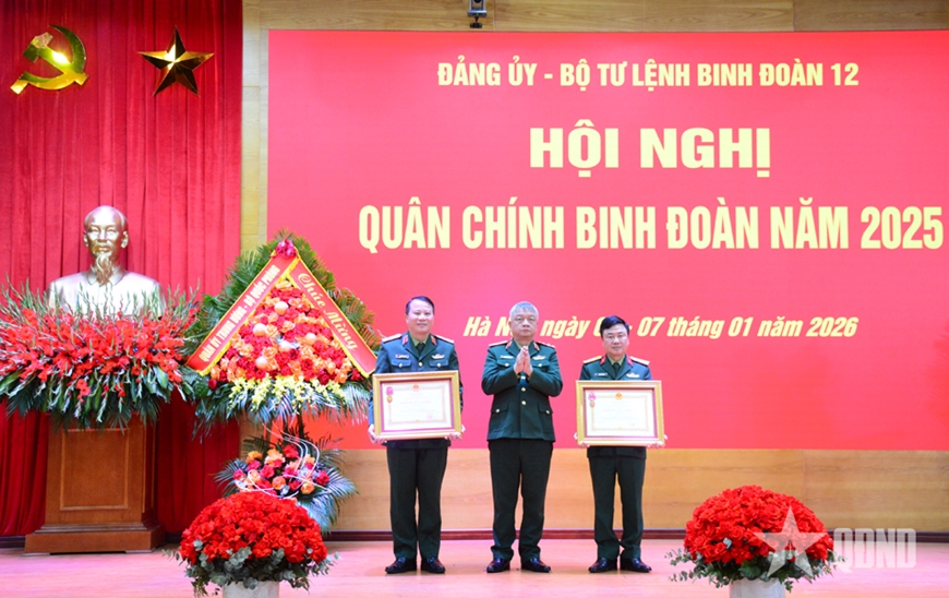 Nhân dịp này, thừa ủy quyền của lãnh đạo Đảng, Nhà nước, Thượng tướng Nguyễn Quang Ngọc trao Huân chương Lao động hạng Nhất tặng Thiếu tướng Nguyễn Hữu Ngọc, Tư lệnh Binh đoàn 12 và Huân chương Lao động hạng Nhì tặng Đại tá Nguyễn Thế Lực, Bí thư Đảng ủy, Phó tư lệnh Binh đoàn 12; trao Bằng khen của Thủ tướng Chính phủ tặng Binh đoàn 12 và Công ty TNHH MTV Xây dựng 99 và 2 cá nhân của Binh đoàn 12 vì có thành tích xuất sắc trong hoàn thành nhiệm vụ năm 2025.