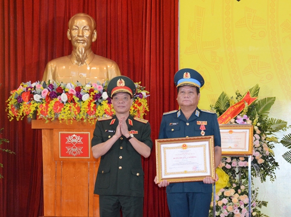 Trung tướng Ngô Minh Tiến trao Huân chương Bảo vệ Tổ quốc hạng Nhất tặng Binh đoàn 18. |