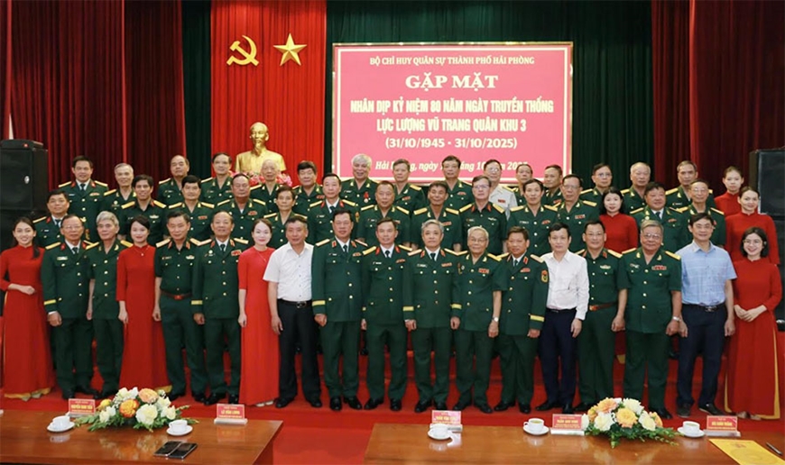 Sáng 16-10, Bộ CHQS thành phố Hải Phòng tổ chức gặp mặt các đồng chí nguyên là Đảng ủy viên Đảng ủy Quân sự (công tác trong Quân đội), Chỉ huy Bộ CHQS thành phố qua các thời kỳ và đại biểu lãnh đạo Hội Cựu chiến binh thành phố, nhân dịp Kỷ niệm 80 năm Ngày truyền thống lực lượng vũ trang (LLVT) Quân khu 3 (31-10-1945/31-10-2025).