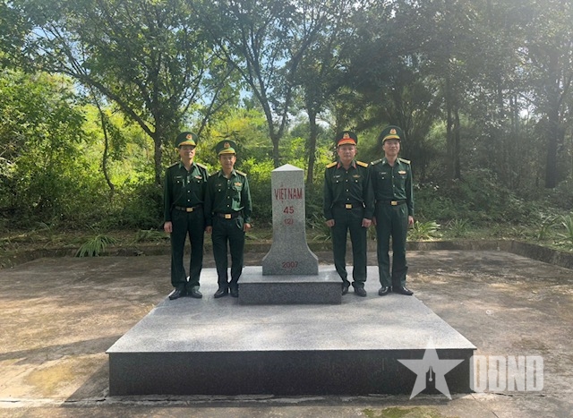 Thủ trưởng Bộ CHQS tỉnh Đắk Lắk kiểm tra cột mốc biên giới.