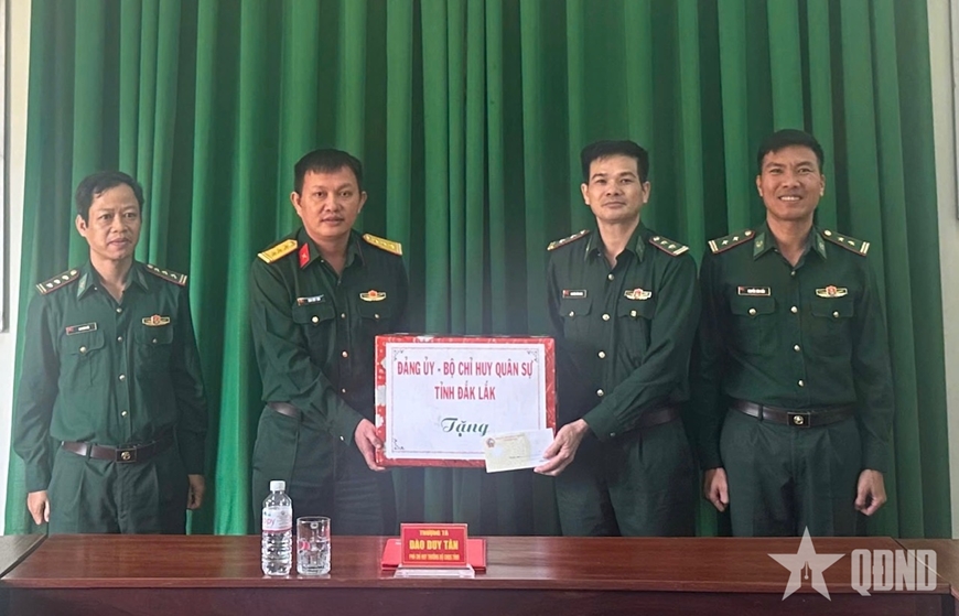 Trao quà của Bộ CHQS tỉnh Đắk Lắk tặng bộ đội Đồn Biên phòng Sê Rê Pốk.