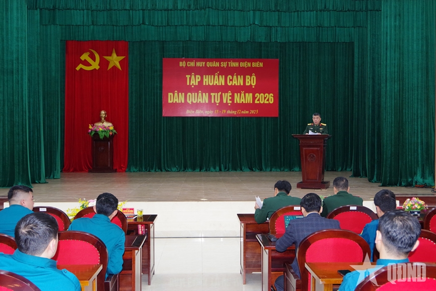 Sáng 15-12, Bộ Chỉ huy Quân sự (CHQS) tỉnh Điện Biên tổ chức khai mạc tập huấn cán bộ dân quân tự vệ năm 2026. Đại tá Nguyễn Văn Đông, Phó chỉ huy trưởng Bộ CHQS tỉnh dự, chỉ đạo.