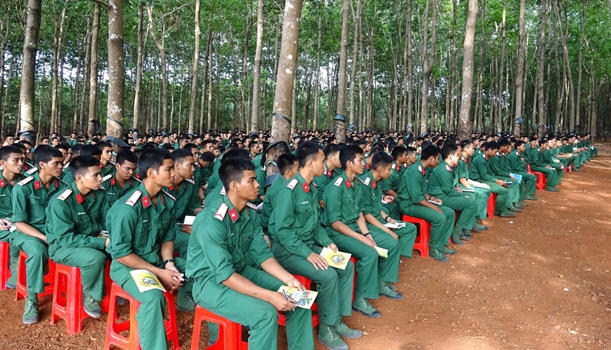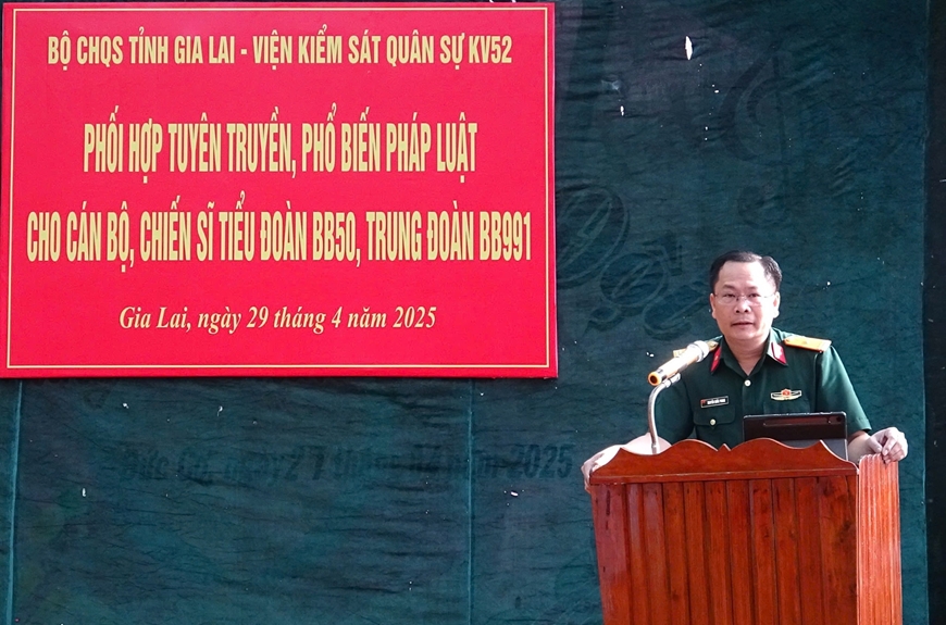 Các chiến sĩ của Trung đoàn 991 (Bộ CHQS tỉnh Gia Lai) nghe tuyên truyền, phổ biến giáo dục pháp luật. |