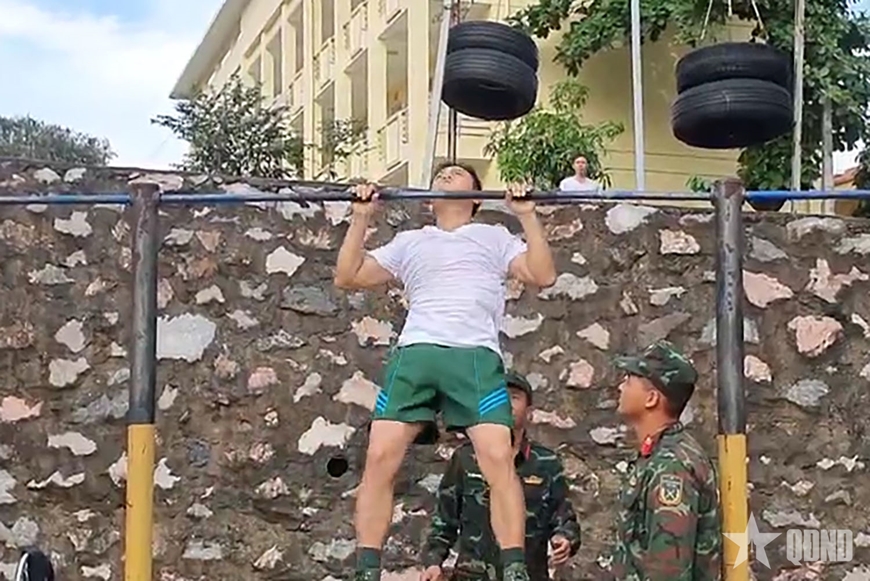 Nội dung kiểm tra thể lực (co tay xà đơn). |