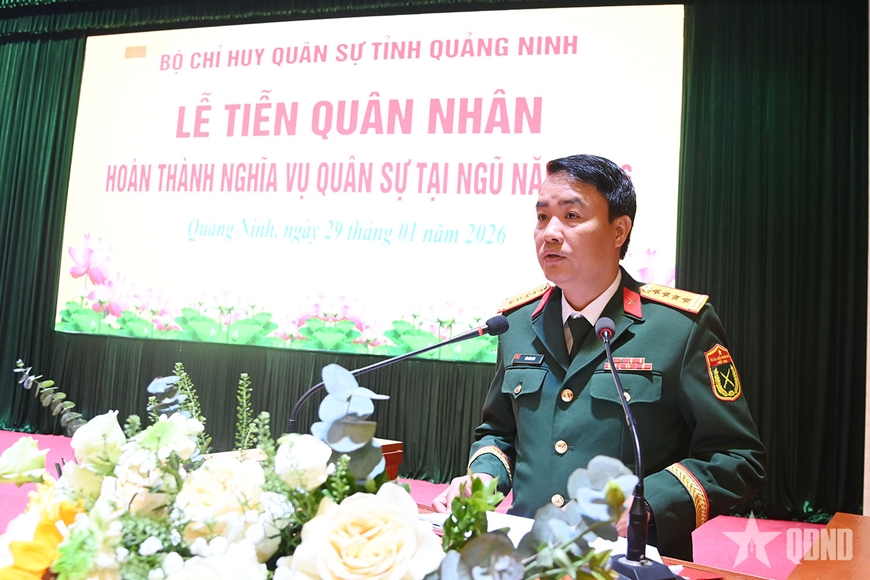 Phát biểu tại buổi lễ, Đại tá Bùi Đức Lâm, Phó chỉ huy trưởng, Tham mưu trưởng Bộ CHQS tỉnh Quảng Ninh ghi nhận, biểu dương tinh thần trách nhiệm, ý chí phấn đấu và những đóng góp tích cực của các quân nhân hoàn thành nghĩa vụ quân sự trong thời gian tại ngũ. Đồng chí mong muốn, khi trở về địa phương, các đồng chí hạ sĩ quan, binh sĩ tiếp tục phát huy phẩm chất Bộ đội Cụ Hồ, chấp hành nghiêm chủ trương của Đảng, chính sách, pháp luật của Nhà nước và các quy định của địa phương; tích cực lao động, học tập, góp phần xây dựng quê hương ngày càng giàu đẹp.