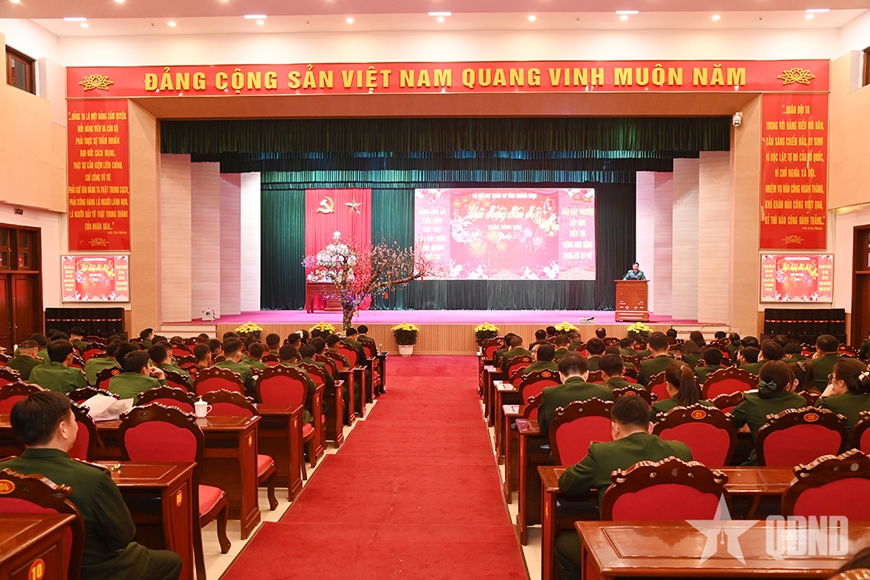 Đại tá Hoàng Văn Thuyết, Chính ủy Bộ CHQS tỉnh Quảng Ninh, đến thăm chúc Tết cán bộ, chiến sĩ Đại đội Thông tin, Phòng Tham mưu Bộ CHQS tỉnh.