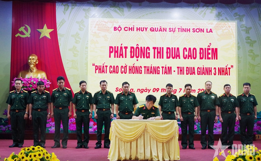 Nhằm lập thành tích thiết thực, tạo khí thế thi đua sôi nổi, động viên cán bộ, chiến sĩ lực lượng vũ trang (LLVT) tỉnh tiếp tục phát huy truyền thống vẻ vang Bộ đội Cụ Hồ nói chung và LLVT tỉnh Sơn La nói riêng, đợt thi đua cao điểm “Phất cao cờ hồng Tháng Tám - Thi đua giành 3 nhất”, với các nội dung, chỉ tiêu cụ thể như: Ý chí, nhận thức, trách nhiệm cao nhất; thực hiện nhiệm vụ chính trị đạt kết quả cao nhất; xây dựng chính quy, chấp hành pháp luật, kỷ luật nghiêm nhất, cải cách hành chính quân sự, đột phá đổi mới, sáng tạo, chuyển đổi số và thực hiện phong trào “Bình dân học vụ số” đạt kết quả cao nhất.