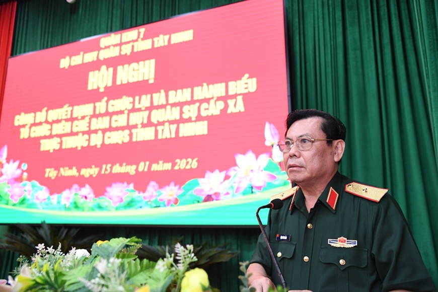 Phát biểu chỉ đạo, Thiếu tướng Đặng Văn Lẫm ghi nhận, đánh giá cao sự chủ động của Bộ CHQS tỉnh Tây Ninh trong việc triển khai thực hiện các quyết định; yêu cầu các cơ quan, đơn vị nhanh chóng ổn định tổ chức, biên chế, phát huy tốt vai trò tham mưu cho cấp ủy, chính quyền địa phương trong xây dựng nền quốc phòng toàn dân, khu vực phòng thủ vững chắc.