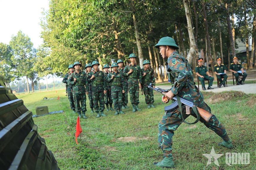 | Cán bộ thực hành huấn luyện kỹ thuật chiến đấu bộ binh. |