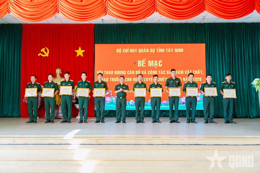 Kết thúc hội thao, thủ trưởng Bộ CHQS tỉnh Tây Ninh tặng thưởng cho các tập thể và cá nhân đạt thành tích xuất sắc.