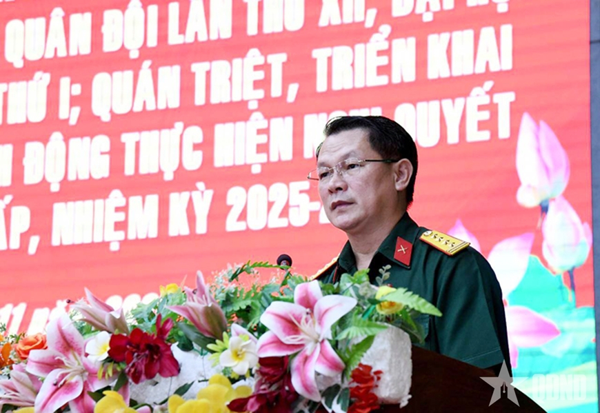 Hội nghị đã thông tin đến cán bộ, đảng viên những nội dung trọng tâm kết quả Đại hội đại biểu Đảng bộ Quân đội lần thứ XII, nhiệm kỳ 2025-2030. Đại hội xác định rõ mục tiêu xây dựng Quân đội cách mạng, chính quy, tinh nhuệ, hiện đại, nhấn mạnh yêu cầu thực hiện 6 nội dung cốt lõi.