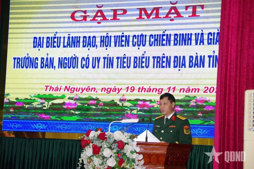 Ngày 19-11, Bộ CHQS tỉnh Thái Nguyên tổ chức buổi gặp mặt lãnh đạo, hội viên Hội Cựu chiến binh, già làng, trưởng bản và người có uy tín tiêu biểu trên địa bàn tỉnh. Dự và chỉ đạo buổi gặp mặt có Đại tá Phan Quyết Thắng, Phó chính ủy Bộ CHQS tỉnh. Chương trình có 50 đại biểu tham dự.