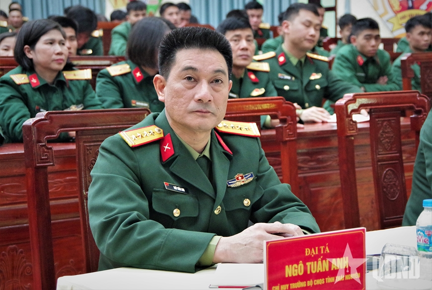 | Đại tá Ngô Tuấn Anh, Chỉ huy trưởng Bộ CHQS tỉnh Thái Nguyên lắng nghe ý kiến của cán bộ, chiến sĩ. |