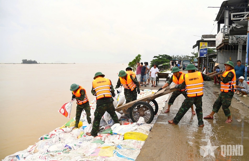 Trước tình hình đó, Bộ CHQS TP Đà Nẵng đã chủ động triển khai các kế hoạch ứng phó theo phương châm “4 tại chỗ”; chỉ đạo các đơn vị duy trì nghiêm chế độ trực chỉ huy, trực phòng, chống thiên tai, tìm kiếm cứu nạn 24/24 giờ; rà soát, chuẩn bị đầy đủ lực lượng, phương tiện, vật chất, sẵn sàng cơ động ứng cứu khi có tình huống xảy ra. Các đơn vị được tăng cường xuồng cứu hộ, ca nô, máy đẩy, nhà bạt, áo phao, dây neo, dụng cụ gia cố đê - kè, cọc chống sạt, đồng thời điều động phương tiện cơ giới, xe đặc chủng, xe tải, xe cứu thương và các thiết bị thông tin dã chiến về sở chỉ huy trung tâm và các khu vực trọng điểm, đảm bảo sẵn sàng cơ động ứng cứu ngay khi có lệnh.