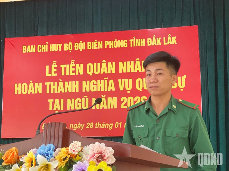 Phát biểu tại buổi lễ, Đại tá Nguyễn Công Tuấn, Phó chỉ huy trưởng, Tham mưu trưởng Ban chỉ huy Bộ đội Biên phòng tỉnh Đắk Lắk ghi nhận, biểu dương tinh thần trách nhiệm, ý chí rèn luyện và những đóng góp của các quân nhân trong thời gian thực hiện nghĩa vụ quân sự.
