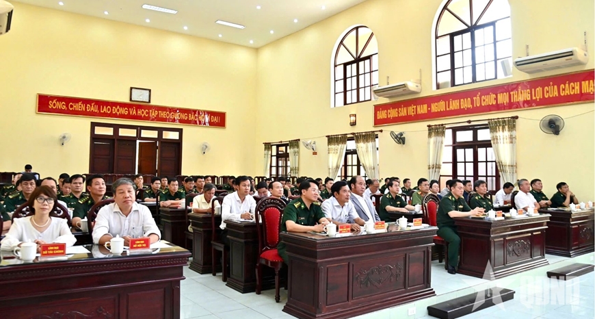 Đại tá Hoàng Minh Hùng, Chỉ huy trưởng Ban Chỉ huy Bộ đội Biên phòng thành phố Huế báo cáo tại hội nghị.