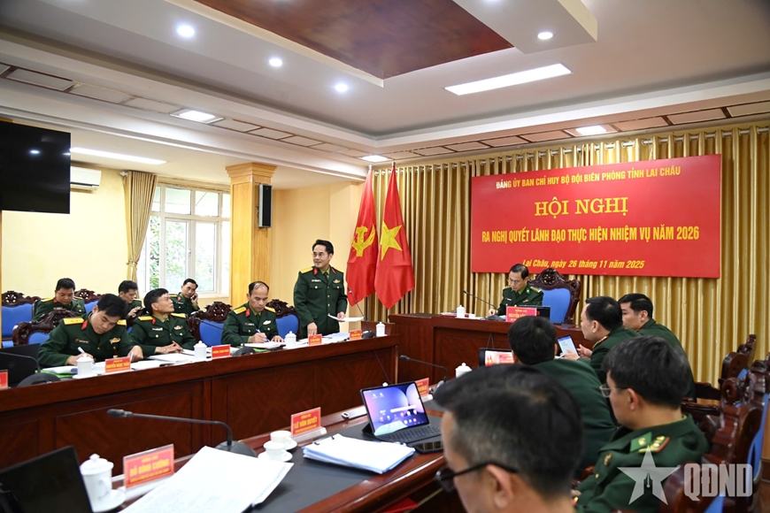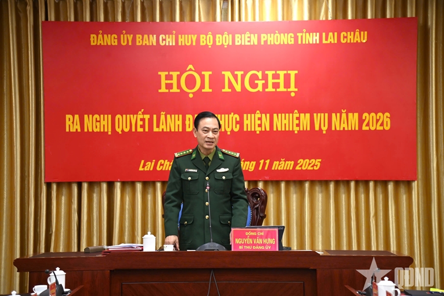 Phát biểu tại hội nghị, Đại tá Triệu Kim Thắng, Chính ủy Bộ CHQS tỉnh Lai Châu ghi nhận, biểu dương những kết quả của Đảng bộ Ban chỉ huy BĐBP tỉnh Lai Châu đạt được trong thời gian qua; đề nghị thời gian tới Đảng ủy, Ban chỉ huy BĐBP tỉnh tập trung lãnh đạo, chỉ đạo hoàn thành thắng lợi nhiệm vụ công tác biên phòng năm 2026. Tập trung nâng cao năng lực nắm, đánh giá, dự báo tình hình, xử lý kịp thời, hiệu quả các tình huống đột xuất trên biên giới; đấu tranh, phòng, chống có hiệu quả với các loại tội phạm, vi phạm pháp luật; quản lý, bảo vệ vững chắc chủ quyền an ninh biên giới của tỉnh.