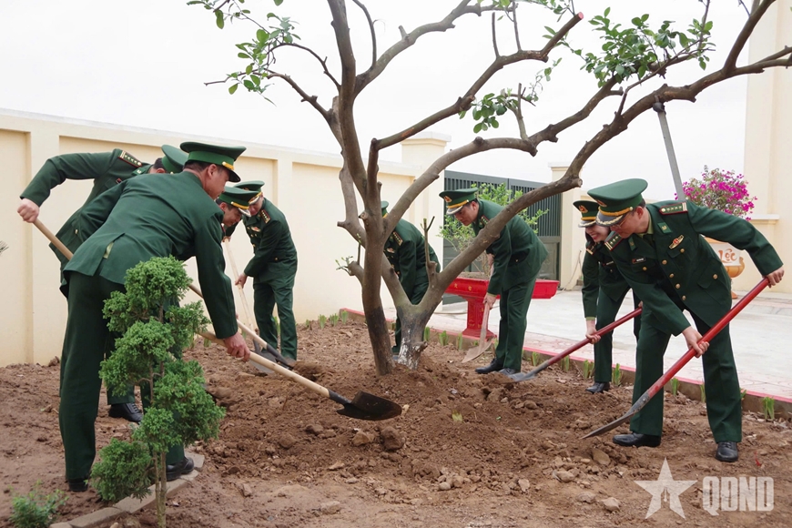 Tại Trạm Kiểm tra, giám sát trên sông, vịnh (Biên phòng cửa khẩu cảng Hải Phòng), Ban chỉ huy BĐBP thành phố Hải Phòng tổ chức Lễ phát động Tết trồng cây năm 2026, trồng mới hơn 200 cây ăn quả, cây bóng mát, cây chắn sóng.