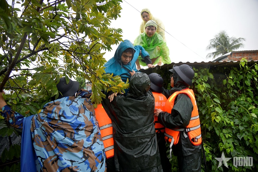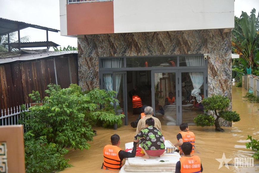 | Lữ đoàn 955 tổ chức cứu hộ ở các vùng ngập lụt. |