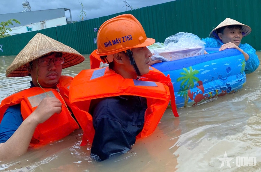 Hai ngày qua, Lữ đoàn 955, Vùng 4 Hải quân và Nhà máy Z753 (Cục Hậu cần – Kỹ thuật, Quân chủng Hải quân) đã triển khai lực lượng đến các khu vực bị ngập sâu tại các xã Suối Dầu, Diên Khánh, Ninh Hòa, Cam Lâm và phường Tây Nha Trang, Bắc Nha Trang (Khánh Hòa), giúp đỡ và đưa người dân đến nơi an toàn.