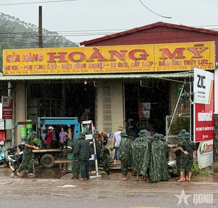 Sáng 6-11, Lữ đoàn 573 (Quân khu 5) đã tổ chức cơ động hơn 150 cán bộ, chiến sĩ đến phường An Nhơn Nam, phường Bình Định, xã Tuy Phước Bắc (tỉnh Gia Lai), cùng chính quyền địa phương tham gia giúp nhân dân chằng chống nhà cửa, di chuyển tài sản, chặt tỉa cây xanh, sẵn sàng thực hiện các nhiệm vụ đột xuất khác.