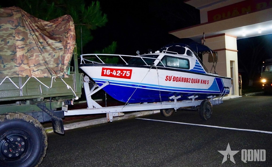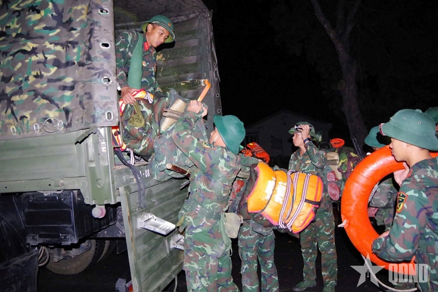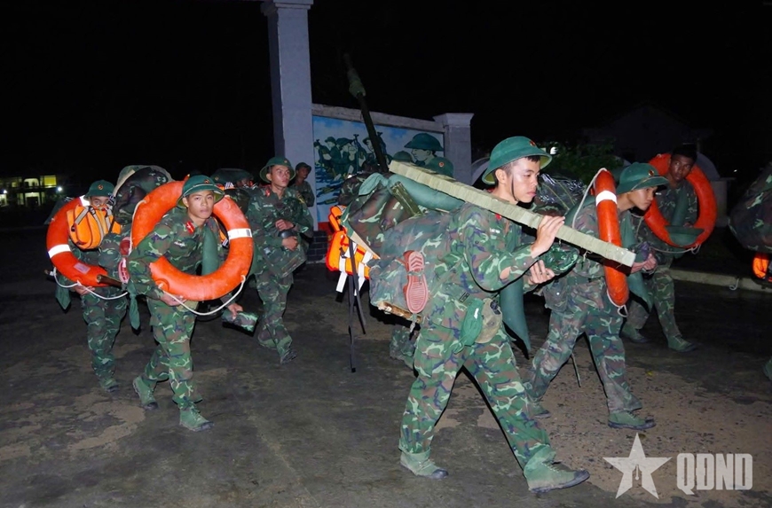 Cán bộ, chiến sĩ Sư đoàn 2 (Quân khu 5) sẵn sàng cơ động, nhận nhiệm vụ hỗ trợ địa phương ứng phó với bão số 13.