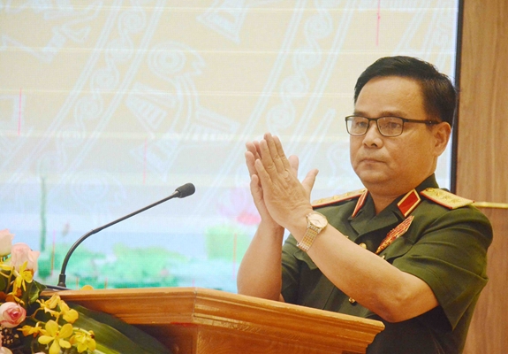 Thượng tướng Lê Chiêm phát biểu tại buổi gặp mặt đại biểu Mẹ VNAH. |