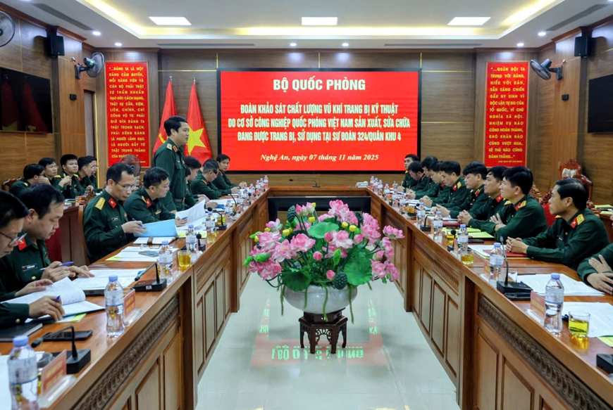 | Đoàn công tác khảo sát vũ khí, trang bị kỹ thuật tại Sư đoàn 324, Quân khu 4. |