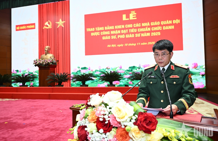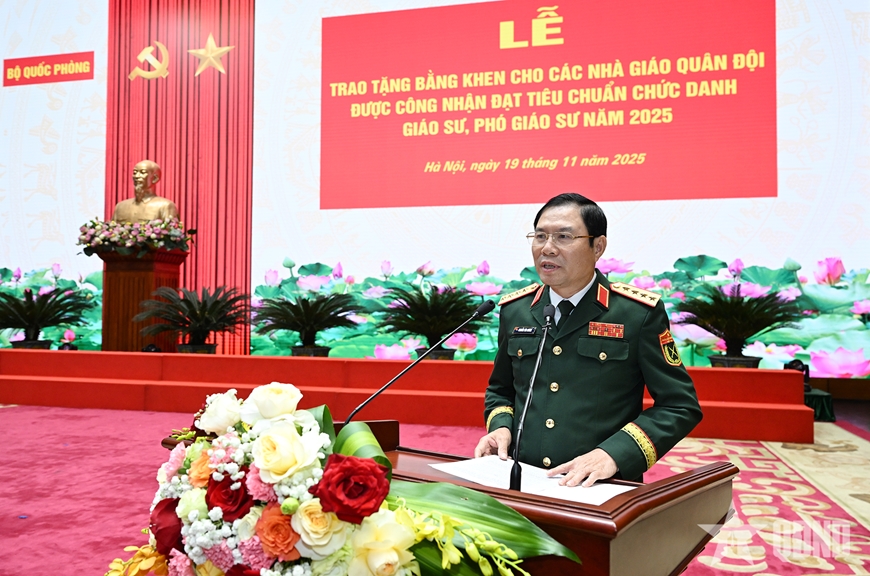 Phát biểu tại buổi lễ, Đại tướng Nguyễn Tân Cương chúc mừng các nhà giáo Quân đội được công nhận đạt tiêu chuẩn chức danh GS, PGS năm 2025; khẳng định đây là những tấm gương sáng tiêu biểu về giảng dạy, nghiên cứu khoa học của Quân đội cho đồng nghiệp và cán bộ, chiến sĩ trong toàn quân học tập noi theo.