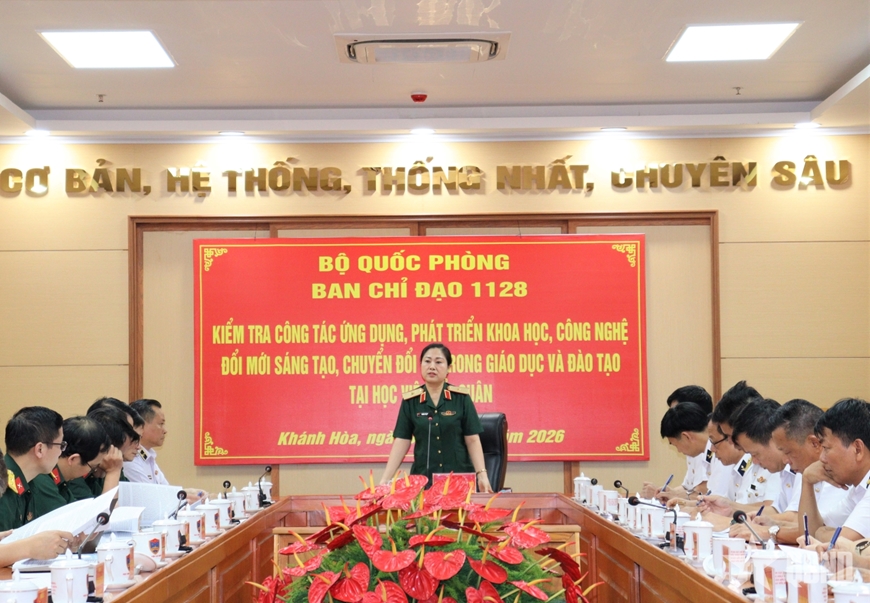 Thực hiện kế hoạch kiểm tra của Ban chỉ đạo 1128 (về phát triển khoa học, công nghệ, đổi mới sáng tạo, chuyển đổi số, thực hiện Đề án 06 và cải cách hành chính), đoàn kiểm tra tiến hành kiểm tra công tác quán triệt, lãnh đạo, chỉ đạo, tổ chức triển khai thực hiện các nghị quyết, chủ trương của Đảng, Chính phủ, Quân ủy Trung ương; kế hoạch, chỉ thị, kết luận của Bộ Quốc phòng về phát triển khoa học, công nghệ, đổi mới sáng tạo, chuyển đổi số trong giáo dục và đào tạo tại Học viện; việc cụ thể hóa nghị quyết của các cấp, hệ thống văn bản, tài liệu số, đánh giá các sản phẩm nghiên cứu khoa học, thực tế ứng dụng các sản phẩm, công tác cải cách hành chính và tài chính tại Học viện Hải quân.